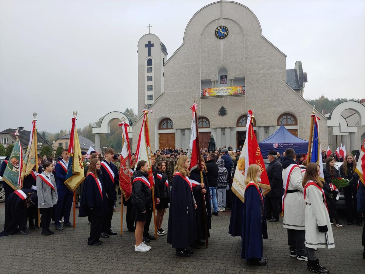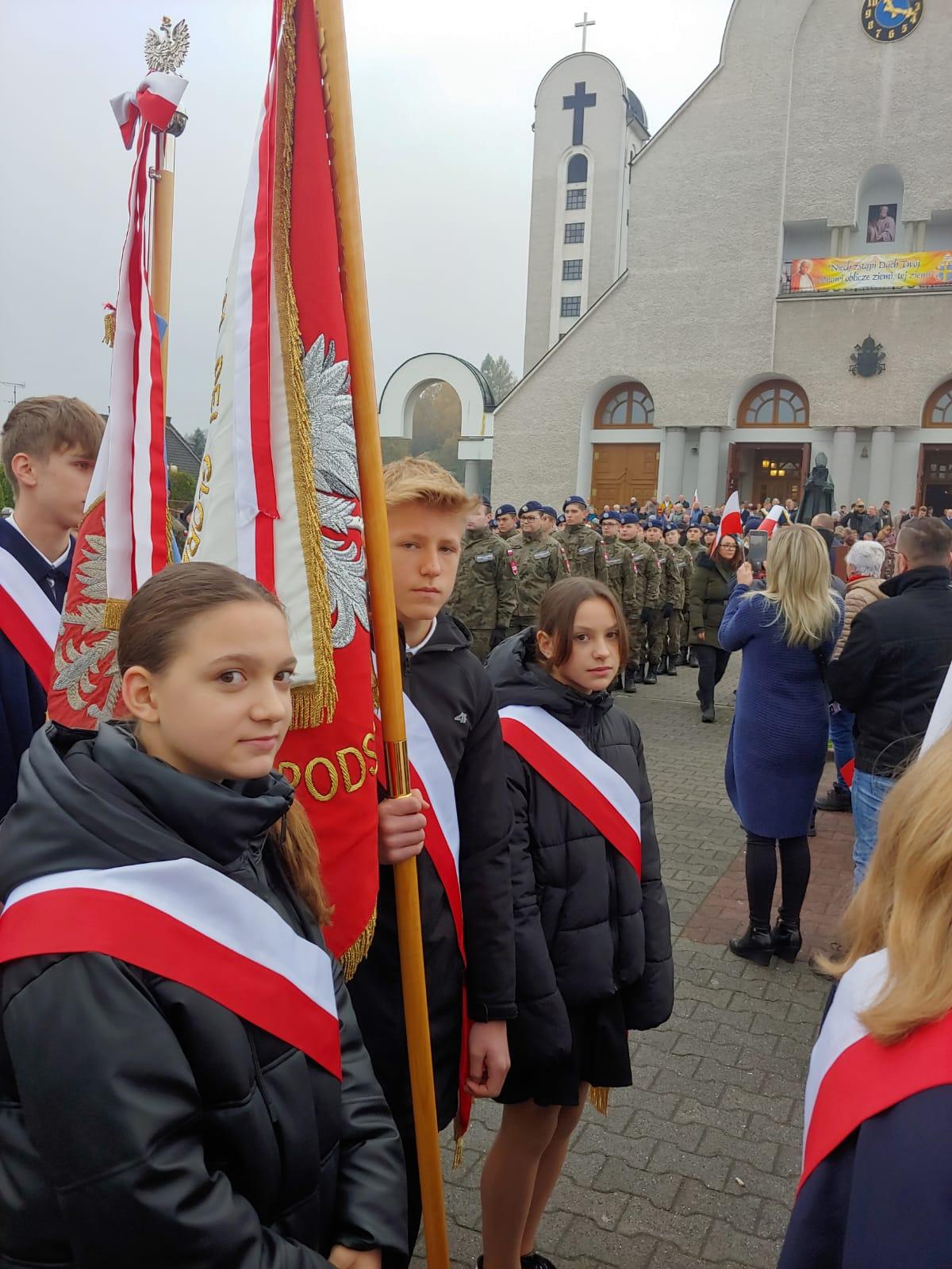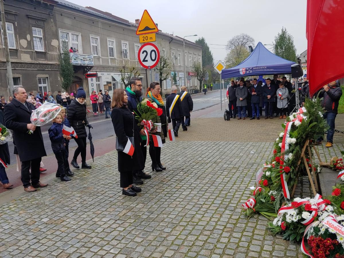 W sobotę 11 listopada poczet sztandarowy szkoły włączył się do uroczystych obchodów Święta Niepodległości w Wadowicach. W obchodach wzięłą rezprezentacja naszej szkoły, która złożyła symboliczny wieniec przed pomnikiem Żołnierzy XII Pułku Piechoty Ziemi Wadowickiej. Szkołę z ramienia nauczycieli reprezentowała Pani Zofia Hyleńska, z ramienia rodziców - Pani Karolina Krzeszowska oraz Pan Miłosz Wszołek.